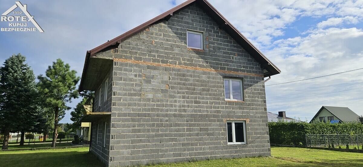 Zapraszamy do zapoznania się z ofertą Agencji Nieruchomości ROTEX:Lipiny - dom piętrowy, murowany w stanie surowym zamkniętym o powierzchni użytkowej około 160m2, wybudowany w 2005 roku z pustaka i cegły, docieplony styropianem 4cm (ściana trzywarstwowa), dach pokryty blachą trapezową;